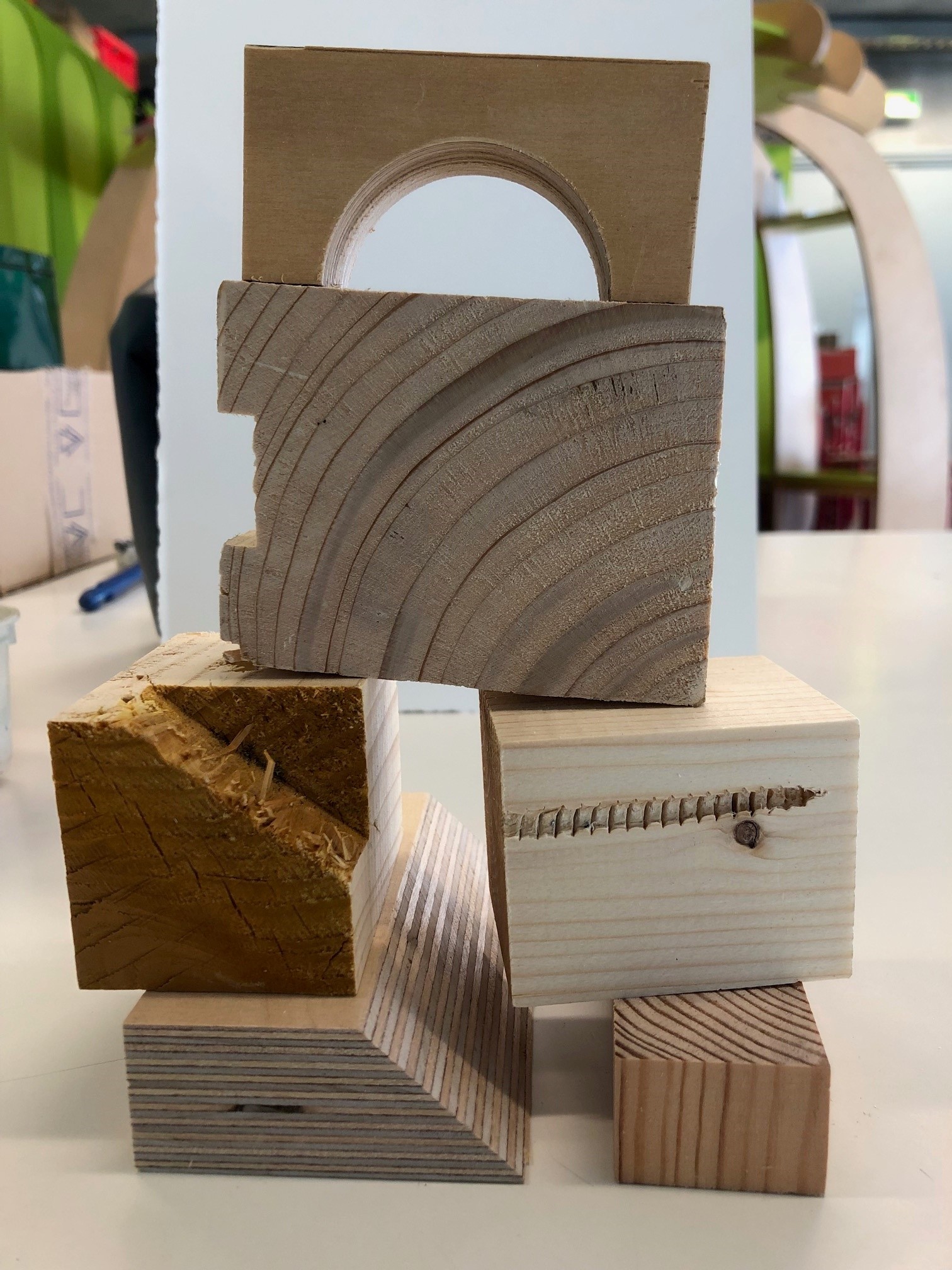 Des compositions au tampon sur papier ou tissu à l’aide de morceaux de bois de formes variées. D’après l’oeuvre de guillaume Leblon.