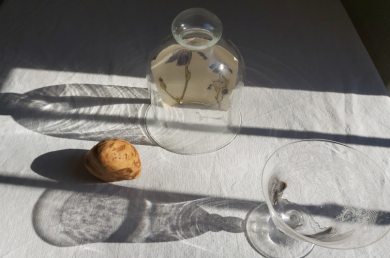 Vous disposerez dans un espace blanc (mur, table...) quelques objets qui font partie de votre quotidien mais qui ne se rencontrent jamais pour créer un dialogue poétique, méditatif et silencieux. Vous créerez un espace scénique dans lequel vous pourrez vous projeter.