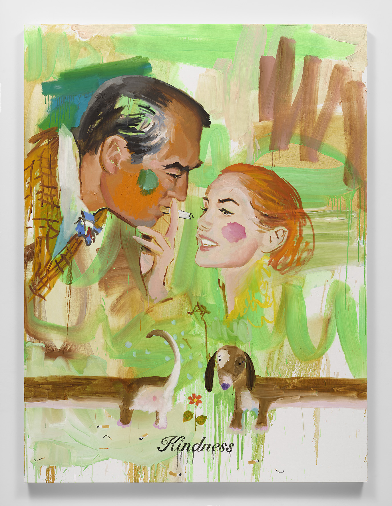 A series of somewhat mawkish portraits of couples draws on old post-war advertisements from a white patriarchal imagery, sprinkled with pictorial incongruities. The aim is to question, with a dose of irony, the dominant culture and the boundary between good and bad taste.